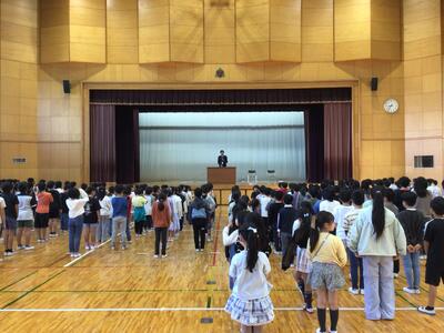 今日は、前期の終業式が行われました。校長先生からは、通信表「あゆみ」に込められた意味や、秋休みの過ごし方、そして後期に向けて気持ちを整えることの大切さについてお話がありました。また、1年生と4年生の代表児童が、前期に頑張ったことや楽しかったこと、後期に頑張りたいことを堂々と発表しました。発表する姿や話を聞く姿勢から、子供たちの成長を感じることができました。