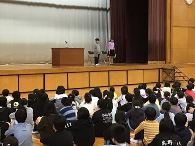 3年生と6年生の代表児童による発表では、後期に頑張りたいことを具体的に述べ、しっかりとした決意が感じられました。新たな気持ちで、規律ある学校生活を送ろうとする姿勢が伝わってきました。