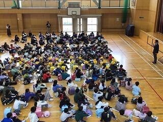 5月1日、全校児童が体育館に集まり、「1年生を迎える会」を行いました。 金管バンドの素敵な演奏が響く中、1年生は6年生と手をつないで元気に入場。全校児童が拍手で迎え、入学をお祝いしました。会の中では、学校行事や学校生活の紹介、心のこもったプレゼントの贈呈、エール、そして歌やダンスなど、内容盛りだくさんの温かい時間となりました。 1年生のみなさんが、これからの学校生活を楽しく過ごしてくれることを願っています。全校で応援しています!
